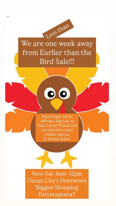 Earlier than the Bird Downtown Holiday Shopping Extravaganza is Saturday Nov. 22nd, 2025. 🦃 . Yoga Ginger is offering Discounted Class Cards.